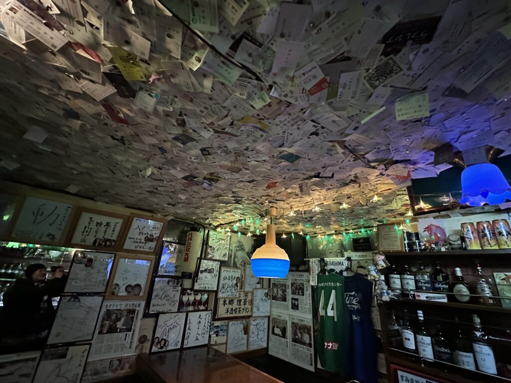 天井にはびっしりと名刺が