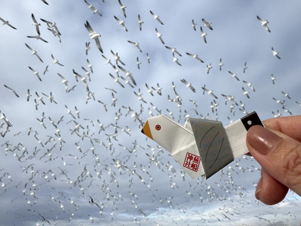 ウミネコが波の満ち引きのように群れを成して空を飛ぶ姿に見入ってしまいました。