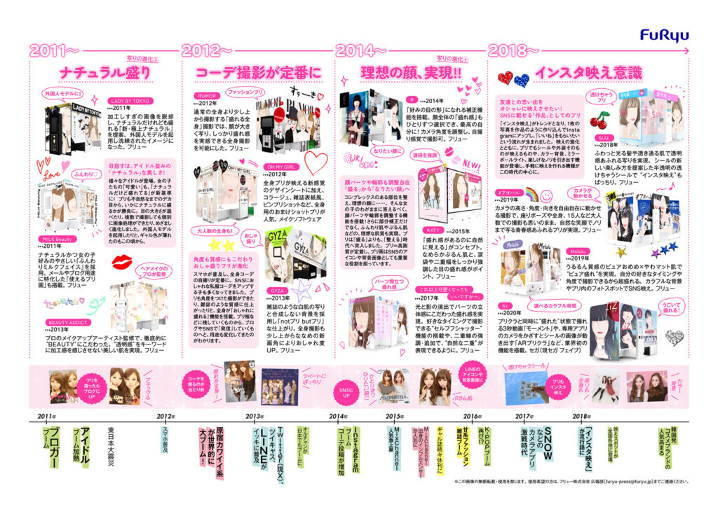そしてプリ機誕生30周年記念ページでは、30年の歴史を振り返る年表を公開中。